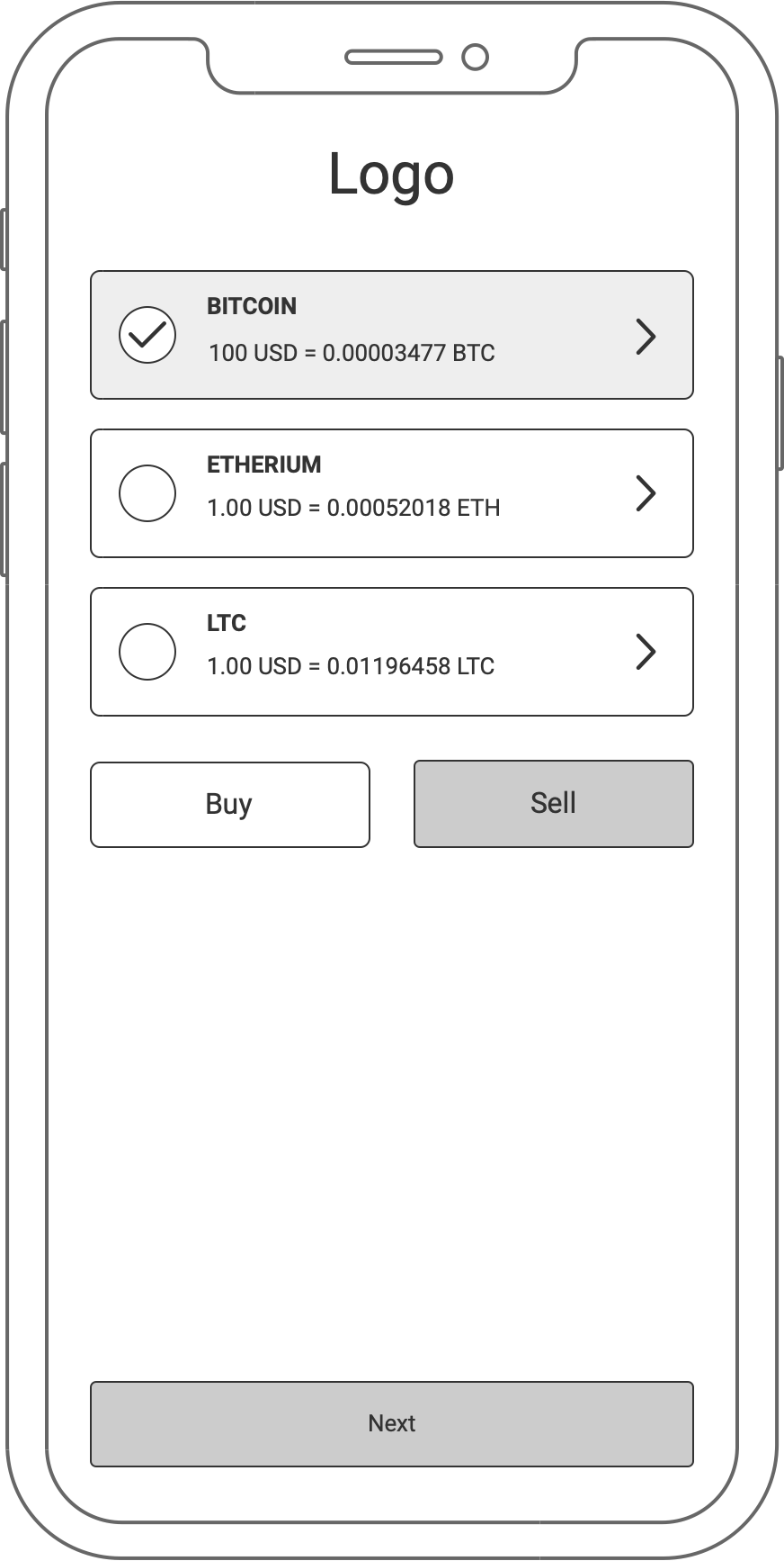 From the customer's wallet app, they select the cryptocurrency to sell.